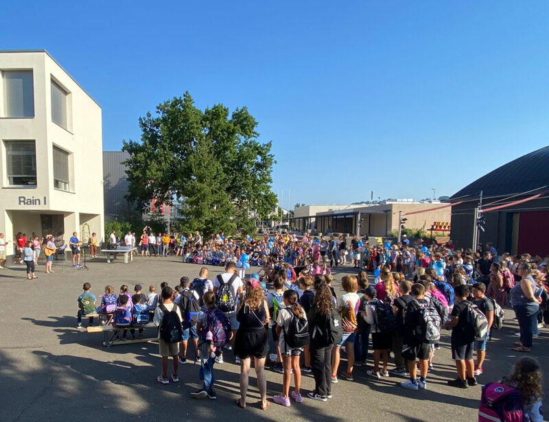 Am Montag, dem 14. August 2023 versammelten sich die Schülerinnen und Schüler der Primarschule Böttstein auf dem Pausenplatz vor dem Unterstufenschulhaus.