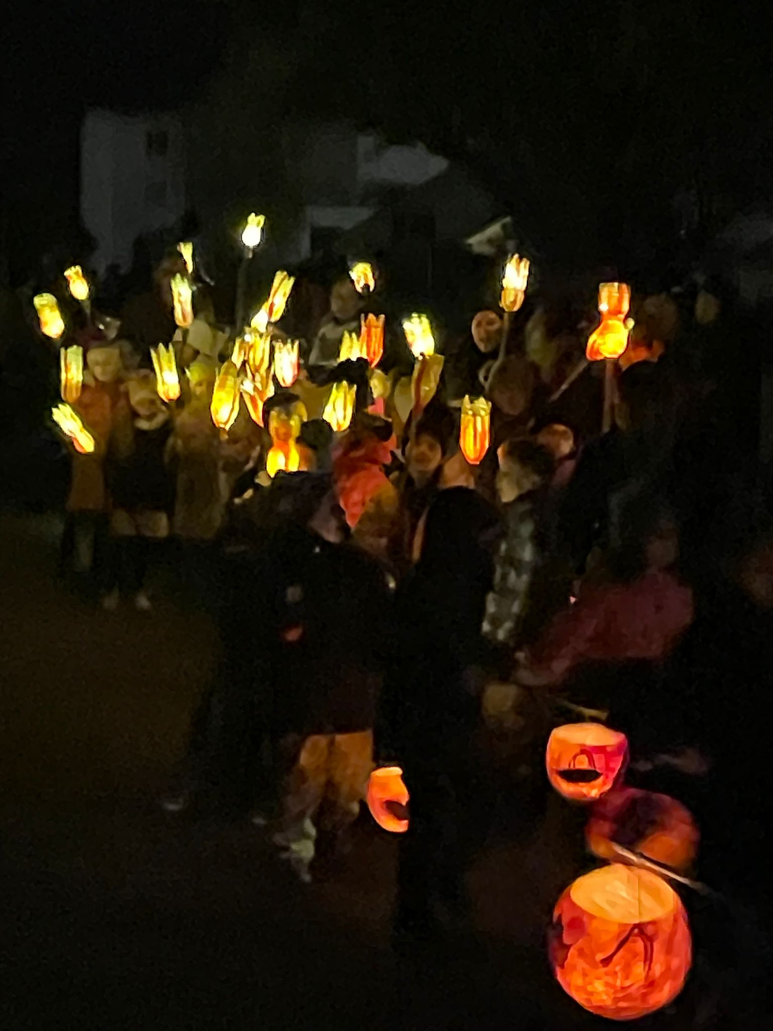 Zahlreiche Schüler und Schülerinnen versammelten sich am Montag, 4. November 2024 um 18.00 Uhr auf dem Pausenplatz. Jede Klasse hatte ihren Treffpunkt. Sybille Lüscher begrüsste alle Kinder und Angehörigen.