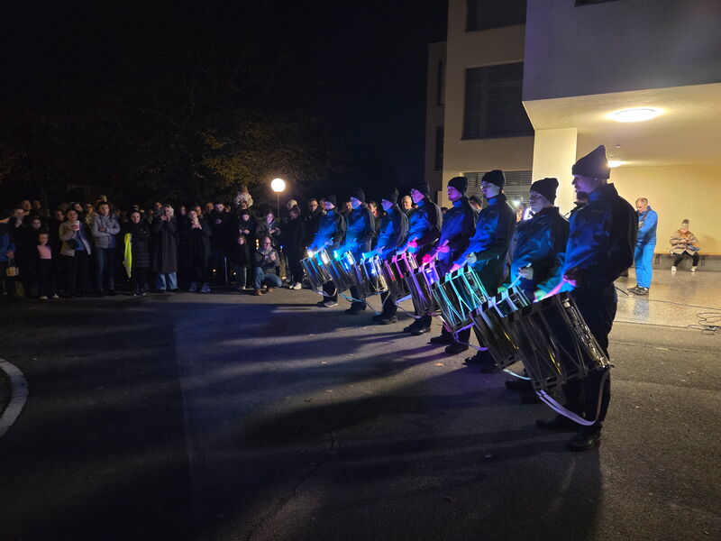 Der Umzug wurde von den Tambouren aus Brugg-Windisch angeführt. Mit ihren leuchtenden Drumsticks sorgten sie für einen besonderen Blickfang und führten unsere Schülerinnen und Schüler, sicher durch die dunkle Nacht. Die Kinder zeigten stolz ihre bunt gestalteten Räbeliechtli, Laternen und liebevoll geschmückten Wagen. Unser neuer Schulbrunnen wurde dekoriert und stimmungsvoll in Szene gesetzt. Die hell leuchtenden Laternen und Räben erhellten die klare Herbstnacht auf wunderbare Weise. Die Kinder waren so begeistert von diesem magischen Moment, dass sie beim Zurückkehren zum Schulhausplatz voller Freude fragten: „Warum ist der Umzug schon vorbei?“ – ein wunderbares Zeichen dafür, wie sehr sie den Abend genossen haben.