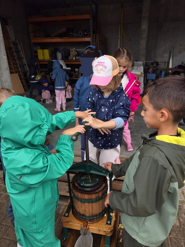 Beim Zusammenarbeiten lernten sich Kinder und Lehrpersonen besser kennen und alle freuten sich, als sie den feinen selbstgepressten Apfelsaft probieren durften. Manchen schmeckte er so gut, dass der Bauch etwas knurrte…