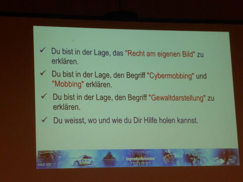 Ziel des Vortrags war es, die Kinder in das Jugendgesetz einzuführen und sie über wichtige Themen wie jugendliche Straftaten, deren Folgen sowie über Gewaltprävention und Cybermobbing zu sensibilisieren.